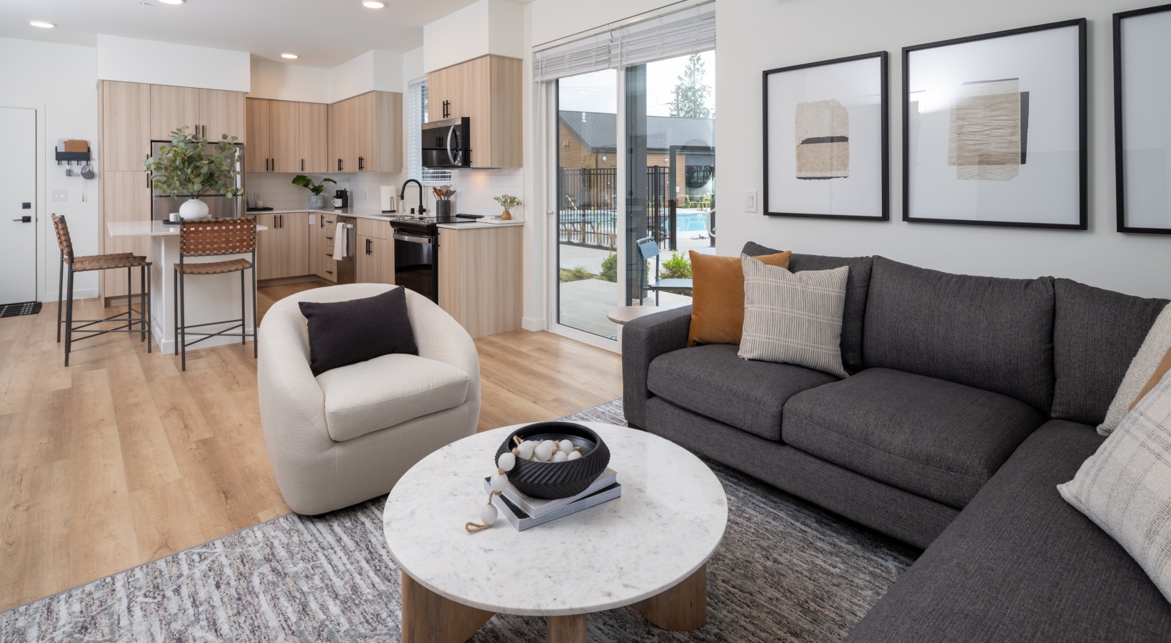 Step inside The Rigney University Place Apartments through our photo gallery and see how modern design, natural surroundings, and community spirit come together. Browse images of our bright, spacious interiors, where open layouts, stylish finishes, and everyday conveniences create homes that feel both polished and welcoming.